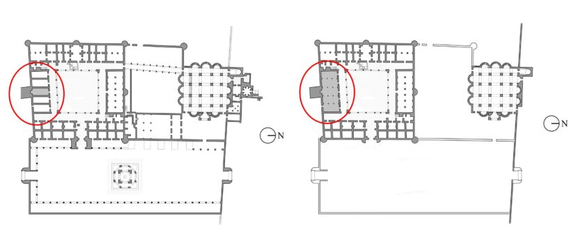 2 ب – كيف يمكنك ان تشرح هذا التعديل مع العلم بالتغييرات للوظائف الديبلوماسية والدينية لهذا القسم من القصر خلال الزمن (راجع النص أعلاه)؟