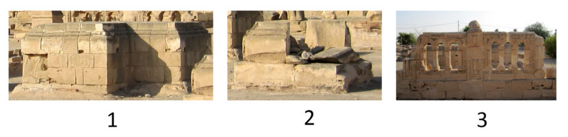 1A. Here are photos of three remaining features of the pavilion. Try to find them at the place you are standing now. Draw a line from the features to the corresponding location in the plan. Click on the image to enlarge it.