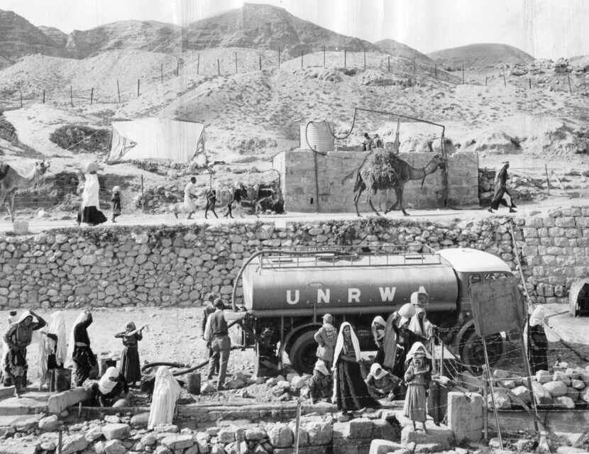 19. Have a look at this photo. The Canadian journalist David Spurgeon took the photo in 1956. It shows an UNRWA truck filling water from Ain es-Sultan destined for one of the refugee camps at Jericho. What can you conclude from the date and activity shown in the picture?