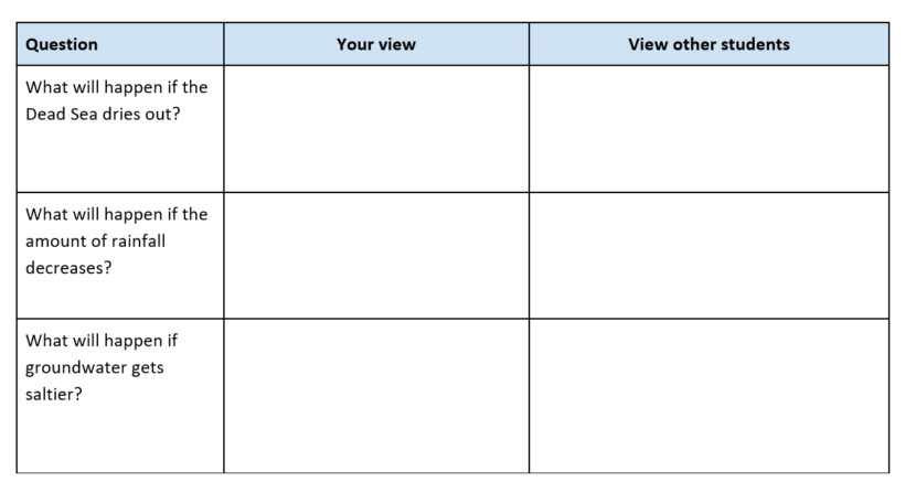 In the scheme you can notice three questions about the climate of Jericho. These ‘What will happen if…’ questions aim to stimulate you to think about the possible consequences of climate change.