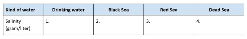 41. Are you able to calculate the salinity of the Dead Sea? Write down your answer in the scheme (assignment 40).
