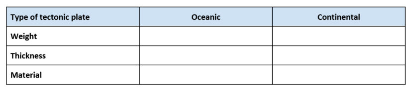 9. Use the text above about tectonic plates and fill in the following diagram:
