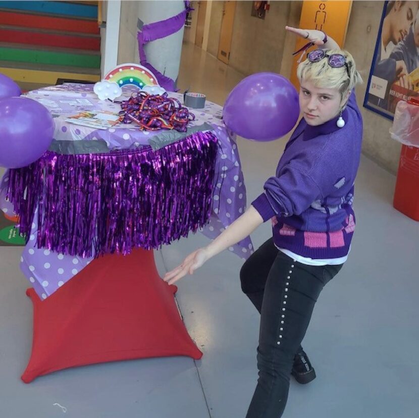 On Purple Friday, allies and everyone who has an affinity with the LGBTIQA+ community wears purple. This year, Hogeschool Utrecht was once again colored purple. Purple shirts, purple nail polish, purple socks! Did you forget it? No problem. You could go to HL15 and PL101 to transform yourself into purple with the materials made available.