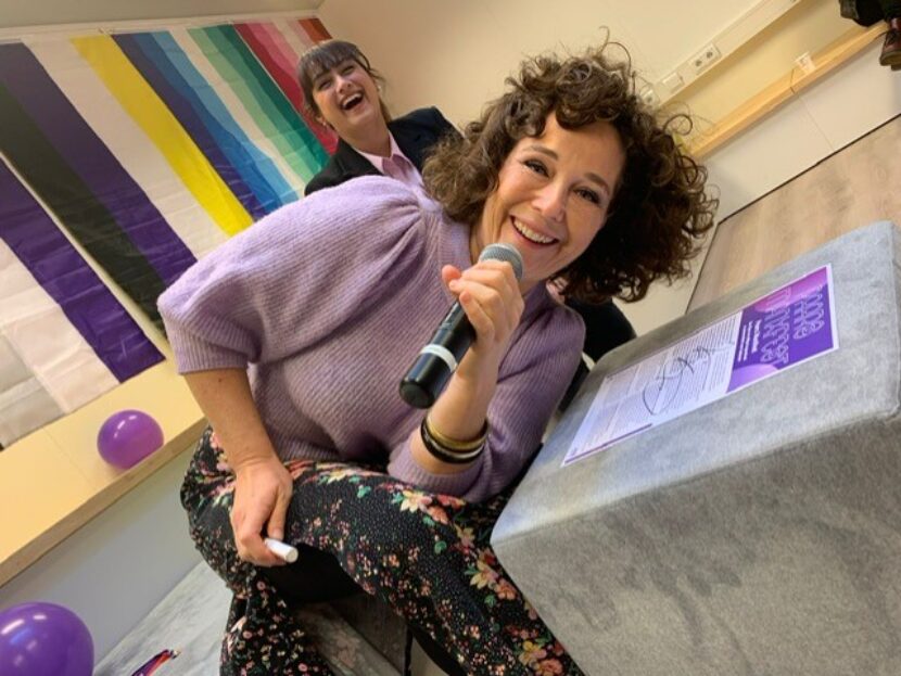 There were colorful, tasty snacks and drinks. Of course, everything was decorated with beautiful purple and rainbow flags. On each table, there were several questions related to the LGBTQIA + community. There was talking, laughing, and sharing. In short, it was a successful party!