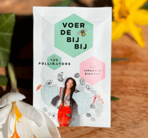De bloemzaadjes zijn van The Pollinators. Sinds 2016 helpen zij bestuivende insecten in hun voortbestaan. Dit doen ze door het landschap in Nederland te herstellen.