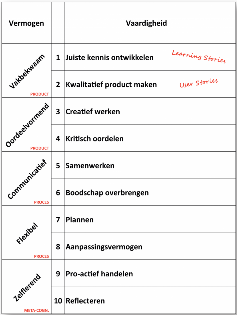 De semester overgangen (de momenten waarop de student 30 EC heeft behaald) is een holistische beoordeling, waarbij we kijken of de student in staat is om voldoende zelfstandig, in een eigen rol, een waardevolle bijdrage te leveren aan een project en daardoor door te kunnen naar het volgende semester. In onderstaand figuur zijn de 10 vaardigheden weergegeven die gedurende het werken en leren altijd centraal staan en waar de student feedback voor ophaalt. Aan het einde kijken we naar de ontwikkeling en groei die de student heeft doorgemaakt en stellen we in een eindevaluatie vast of de student klaar is naar het volgende semester te gaan. Bij werkwijze staat dit verder uitgewerkt.
